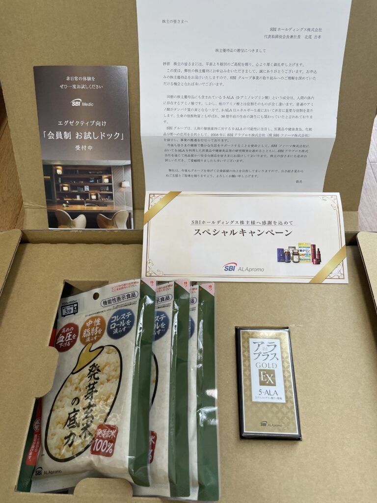 SBIホールディングスから株主優待が届いた 株 X Facebook はてブ LINE Pinterest コピー 2025.11.30 2024年8月、SBIホールディングスから株主優待が届きました。 発芽玄米の底力パック3つとアラプラスというサプリメント。 SBIホールディングスの代表取締役会長兼社長の北尾吉孝さんが、このサプリメントが元気の秘訣です!と以前おっしゃっていました 2024.3.31時点で100株保有で優待をいただけました にほんブログ村
