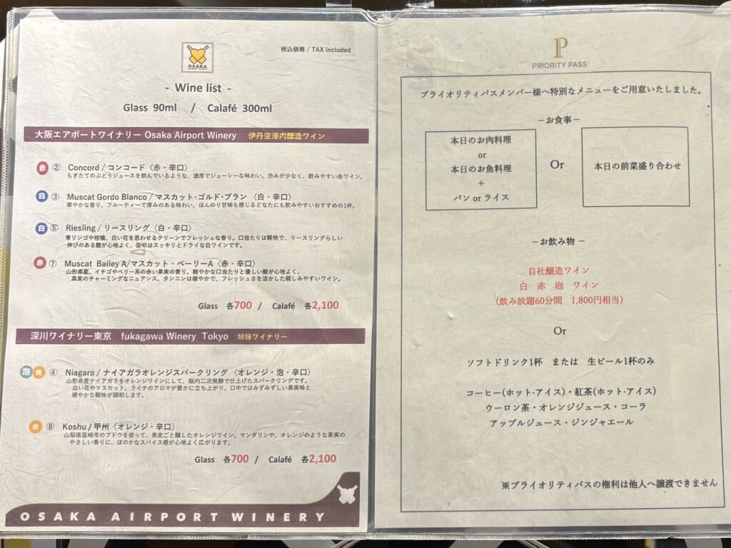 大阪国際空港(伊丹空港)から羽田空港へ飛行機で移動する予定があったので、プライオリティパスを使って「大阪エアポートワイナリー」へ行ってきました。
