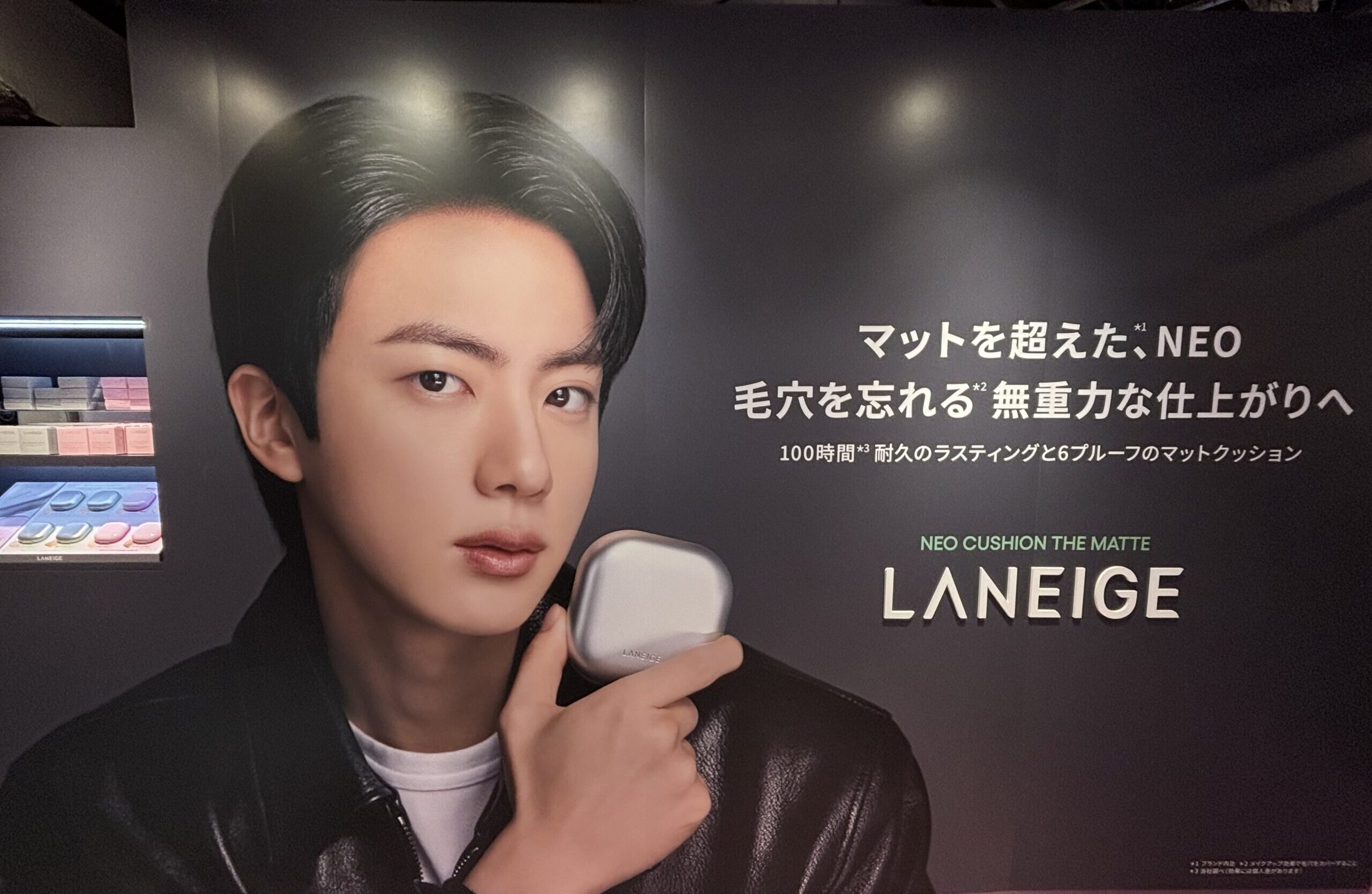 BTSのJIN君がアンバサダーをつとめていて、大きな広告で迎えてくれます。
