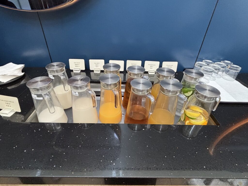 食事エリアに、セルフサービスで入れられるドリンクもあるのですが、バーテンダーに作ってもらうこんなに素敵なノンアルコールカクテルに!